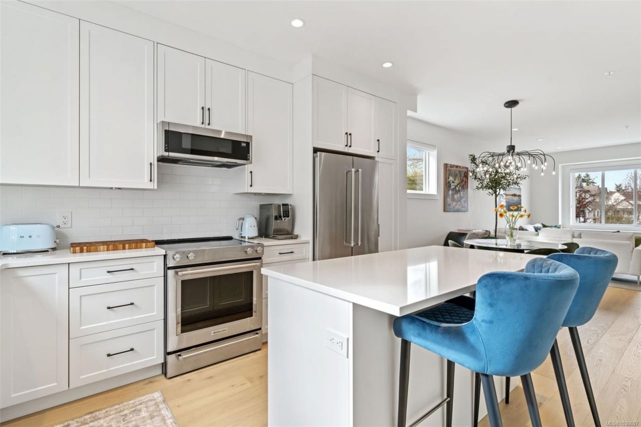 NO GST! Built in 2025, this beautifully appointed corner-unit townhome offers 3 bedrooms, 4 bathrooms, and bright, airy living with 9-foot ceilings on both main and upper levels. The custom white kitchen features ceiling-height cabinetry, quartz countertops, a generous island, and premium stainless steel appliances, hardwood flooring, over $9,000 in upgraded designer lighting, and an $8,500 electric blinds package. Upstairs, enjoy the convenience of an in-suite laundry area alongside two well-appointed bedrooms, which includes the spacious primary retreat complete with a private ensuite. Both bedrooms offer ample closet space, while all tiled...read more