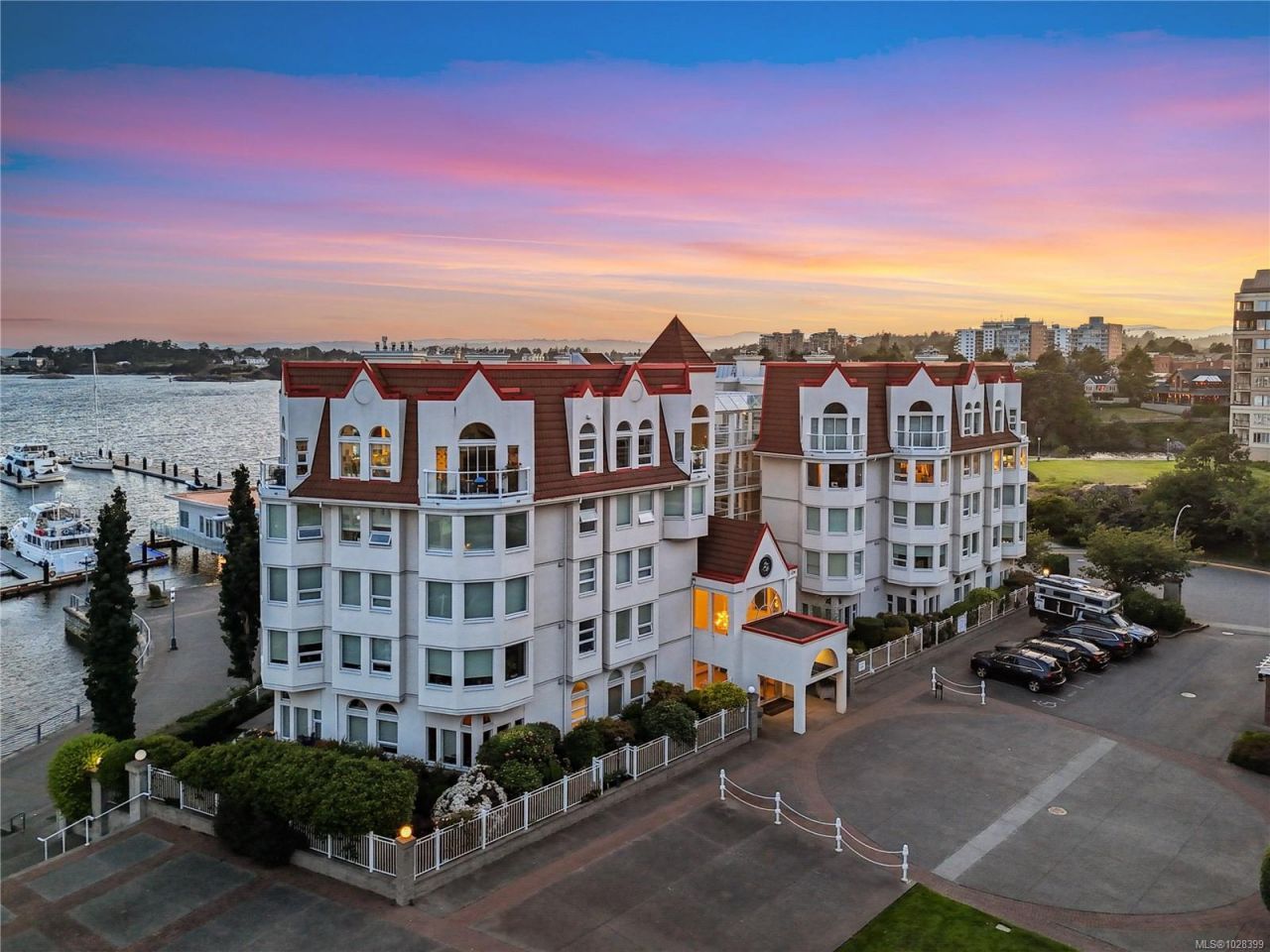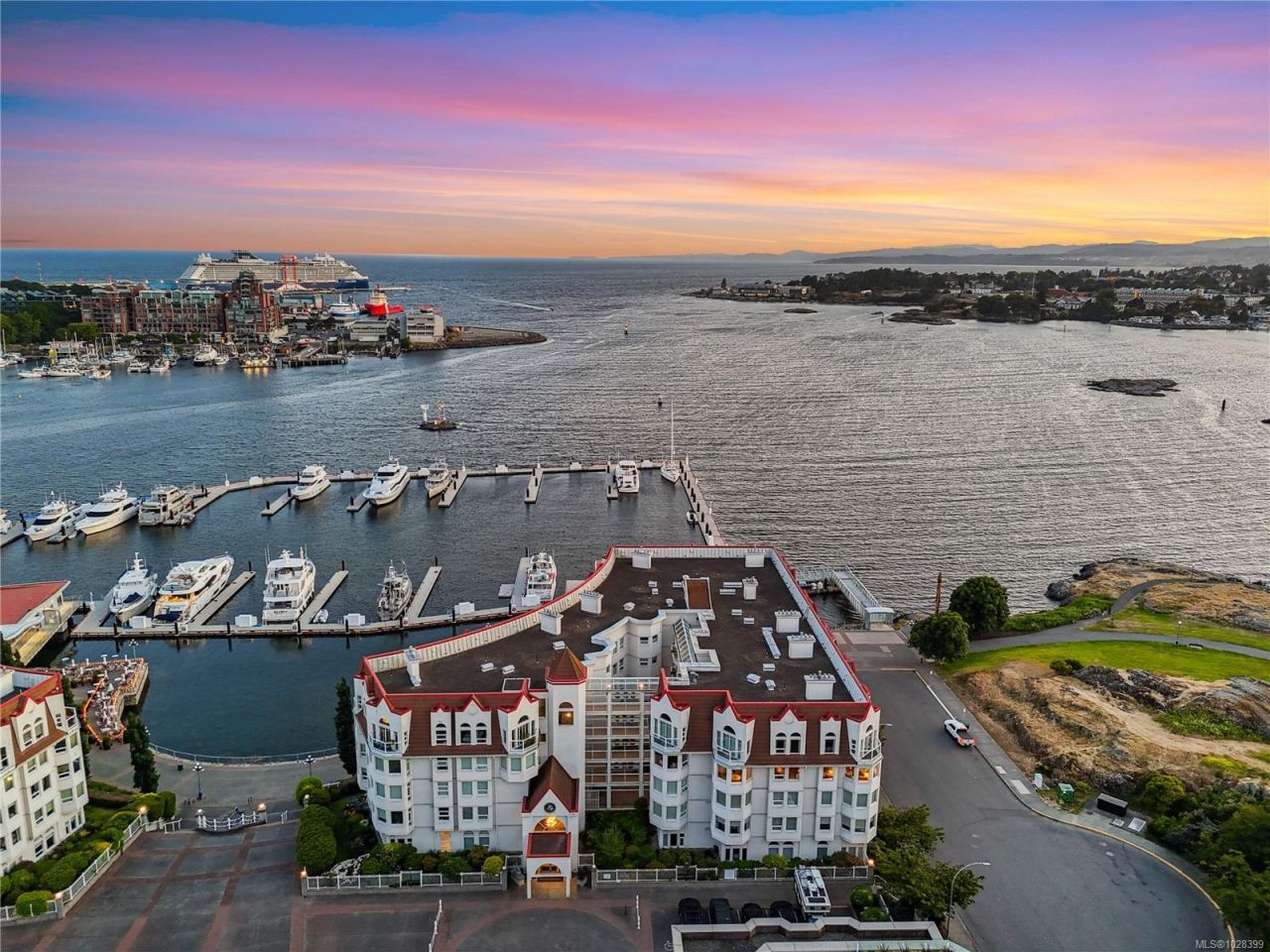 Experience luxury coastal living at Royal Quays, an executive ocean view condominium in the coveted Songhees waterfront community. Just a short stroll along the scenic oceanfront walkway to downtown Victoria, shops, and award-winning dining. This beautifully updated 1 bedroom plus den, 2 bath residence is southwest-facing, offering breathtaking ocean and sunset views. Soaring 11-foot ceilings and expansive windows flood the space with natural light. Upgrades include new engineered hardwood floors, fresh paint, new carpet, modern light fixtures, & refreshed kitchen with new countertops and backsplash. The spacious living room features a cozy...read more