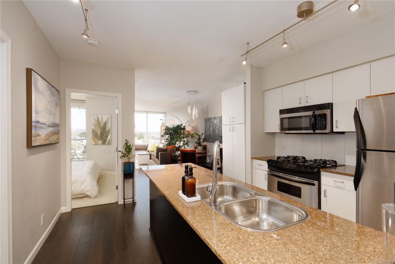 Open House - Saturday April 11 1-3 pm. West-Facing 10th Floor Suite at Parc Residence ? Live Where the Action Is:One bedroom + Den in the heart of Vic West's most walkable neighbourhood. Floor-to-ceiling windows frame Sooke Hills views and spectacular sunsets from your private balcony.Features: Hardwood floors, open-concept living w/fireplace, granite kitchen w/stainless appliances & bar seating, steel & concrete construction, secure parking, storage locker, gym & recreation room.Location: Steps to Galloping Goose Trail, kayak/SUP launches, restaurants, groceries & waterfront parks. Minutes to downtown.Flexibility: Pets & rentals allowed,...read more
