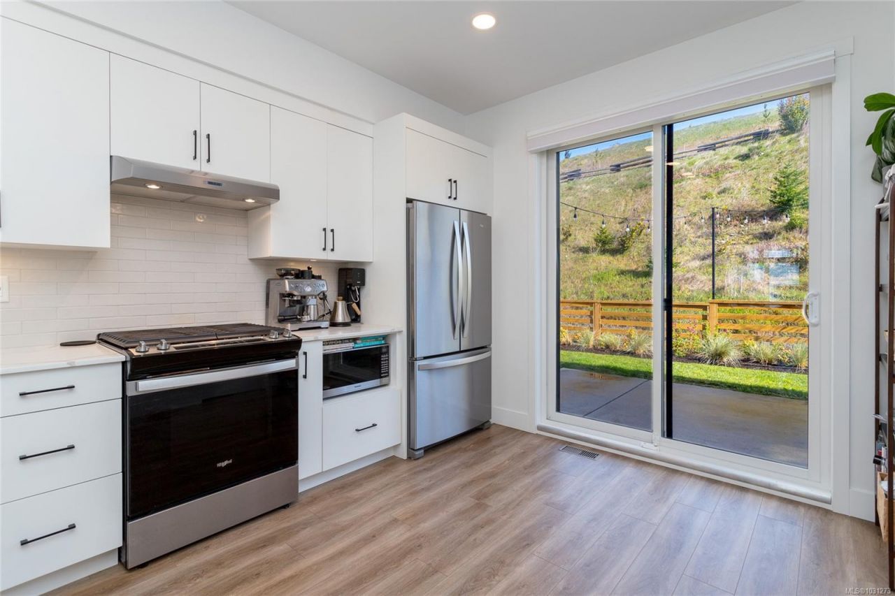 Welcome to Royal Bay! Spacious, corner two bedroom, three bath townhouse with extra square footage, views and privacy! Main level features open-concept living flooded with natural light, 9-foot ceilings, and a private outdoor patio backing onto a beautiful trail, no neighbours here. The sleek kitchen with quartz countertops, a gas stove, and stainless-steel appliances package. Open concept living and dining room space for effortless entertaining. Top floor has two spacious bedrooms with their own ensuites! One of the rare floorplans with a tandem double deep garage for office, gym or extra storage. Steps away from ocean, parks, beaches, all...read more
