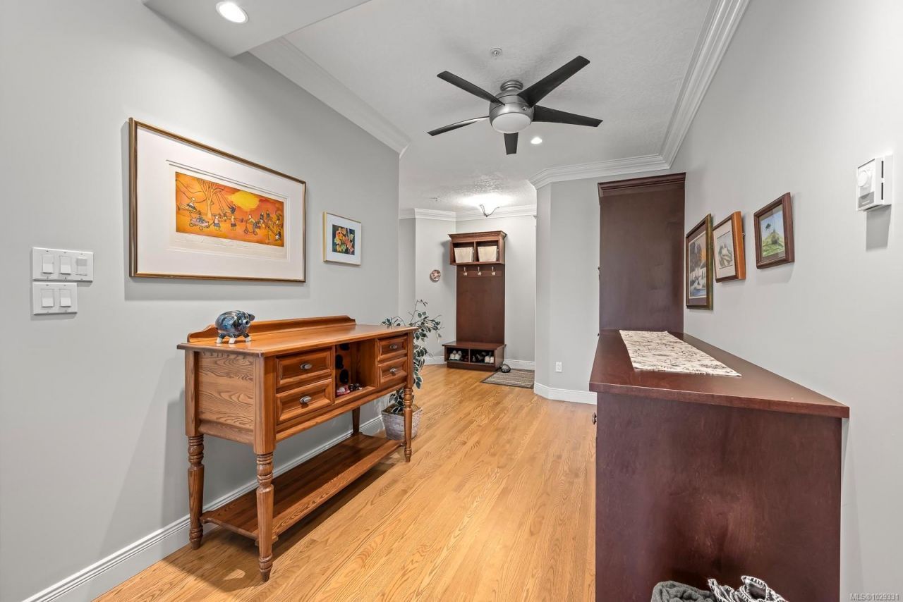 Welcome to Corinthia Estates, this is one of the largest units in the complex, with many lovely updates.This kitchen has it all! Newer stainless appliances, granite counters, warming oven/proofer, garborator, wine fridge and additional built in custom cabinets.Hardwood floors throughout (bedrooms carpet), and custom gas fireplace in the living room. The bathrooms have heated tile floors, custom closets, and both bedrooms are spacious with double aspect windows and filled with sunlight. There is natural gas hookup for barbeque and kitchen stove.This unit is one of only a few that includes golf cart(currently e-bike storage) in the underground...read more