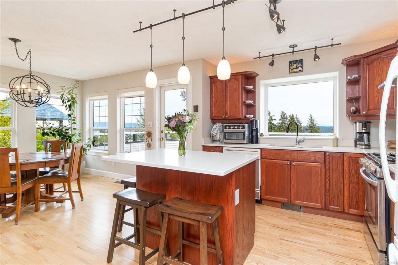 Enjoy sweeping 180° ocean views and stunning sunrises from the front deck of this well-cared-for home. Designed for flexibility, park on Gourlay Place and walk straight into main level living or use the garage entry on Louise Rd; An ideal option for easy access or unloading. Inside, vaulted ceilings, hardwood floors, and a bright open layout create a welcoming space to gather with family and friends. The kitchen and living areas are generous in size, perfect for entertaining, many updates over the years, including countertops and bathroom vanities, adding modern comfort. With room for a family yet convenient for retirees wanting main-level...read more