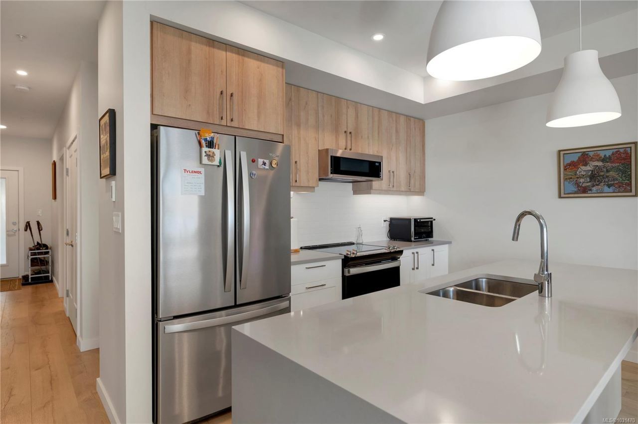 Experience coastal living at its finest in this stunning 2 bedroom + den ocean view condo. Designed with open concept living in mind, this home offers a bright, modern layout perfect for both relaxing and entertaining. The stylish kitchen features quartz countertops, stainless steel appliances, and sleek modern cabinetry, flowing seamlessly into the main living space. Low-maintenance laminate flooring adds durability and contemporary appeal throughout. The spacious primary bedroom is a true retreat, complete with a deluxe ensuite featuring dual sinks and a beautifully tiled walk-in shower. The versatile den makes an ideal home office, guest...read more