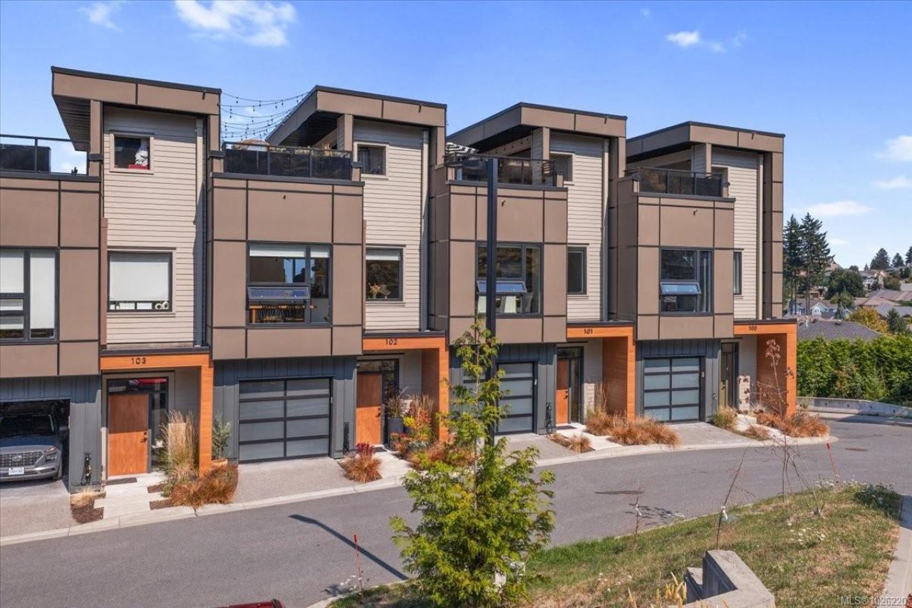 Experience breathtaking ocean and mountain views from this modern North Nanaimo townhouse, complete with a 700 sqft rooftop patio designed for entertaining or relaxing in style. Offering 1,667 sqft across three levels, this 3-bedroom, 3-bathroom home combines thoughtful design with modern finishes. The main level showcases an open-concept kitchen, dining, and living area with balcony access, large windows, and abundant natural light. The entry-level primary suite includes a private balcony, walk-in closet, and spa-inspired 5-pc ensuite with a soaker tub. The lower level features a spacious second bedroom with walk-in closet, a 5-pc bath,...read more
