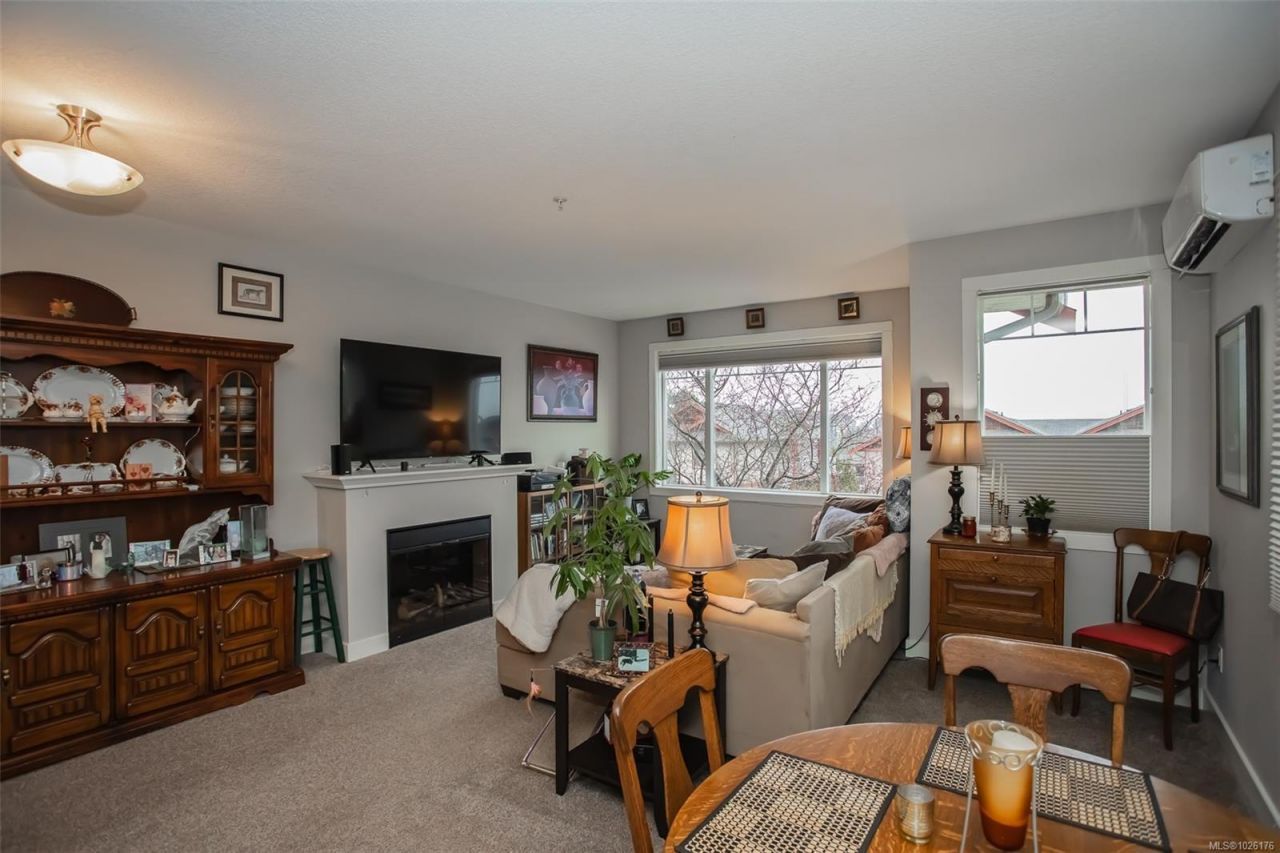 Rentals allowed. Bright upper-level ocean-view townhome with 3 bedrooms and 2 full bathrooms. The open-concept great room features 9' ceilings, large windows, a fireplace, and a ductless heat pump for efficient heating and cooling. A versatile third bedroom off the great room works well as an office. Down the hall you'll find the main bathroom and in-unit laundry. The primary suite includes a wall-mounted heat pump, walk-in closet, and 3-piece ensuite. Enjoy a sun-filled deck and the added privacy and light of an upper unit. Walkable to shops and amenities ? an excellent investment or place to call home.