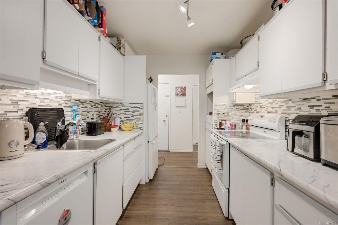 1083sqft two bedroom condo in the heart of Esquimalt at Harbour View House! Corner unit on the quiet side of the building with large floorplan including 22x15 living room, 7x4 in-unit storage room, 14x13 primary bedroom with walk-in closet and 11x10 second bedroom! Open living and dining space, 11x5 balcony with green outlook, updated laminate flooring, newer bathtub and surround, fresh paint, modern lighting and well equipped kitchen with dishwasher and newer countertops. Small 14 unit strata is well maintained with updated balconies and vinyl windows and the strata fee includes hot water. Unit comes with one parking stall, all ages welcome,...read more