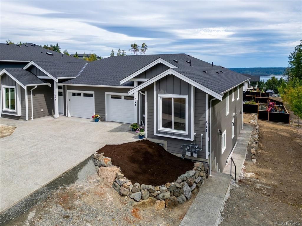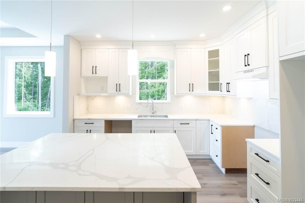 This half duplex home features impressive amenities, a rare 1 bed legal suite and zero strata fees. Enjoy ocean & forest views from the living room, kitchen, primary bedroom, and back deck. The kitchen offers elegant white cabinetry with soft-close drawers/ doors, under-cabinet lighting, & luxurious quartz countertops & backsplash. A tray ceiling in the living room enhances the spacious feel, complemented by durable laminate flooring and stylish tile in the bathrooms. Additional highlights include 9' ceilings, an on-demand hot water system, and a natural gas furnace with air conditioning roughed in, plus a natural gas barbecue r/i connection...read more